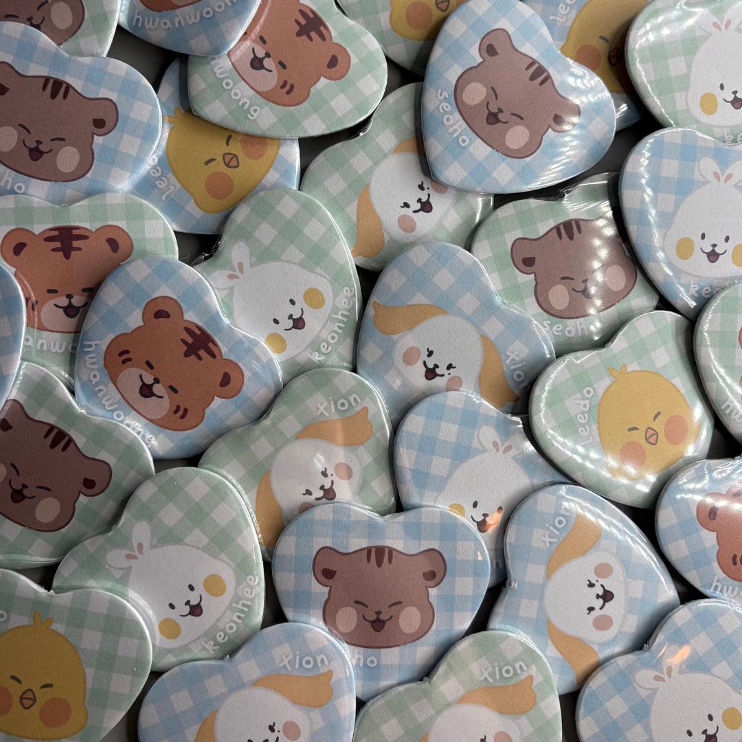 Oneus Hello,USS Character Handmade Heart Shaped Pin Back Buttons